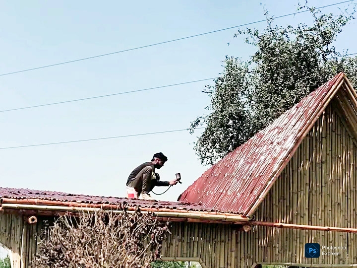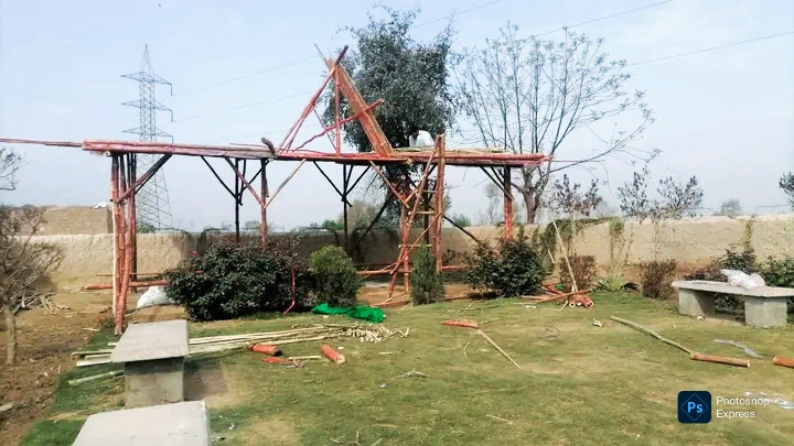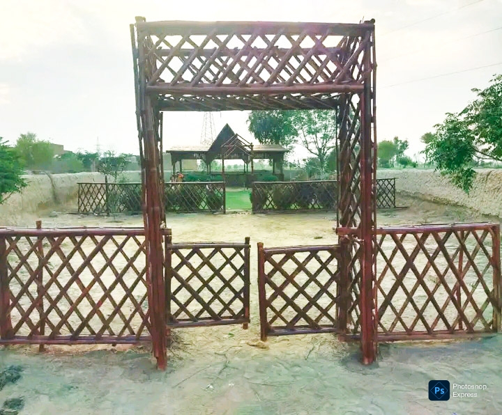 This bamboo shed is designed in a very beautiful way. This bamboo shed is made in the city of Vihari, Pakistan. Bamboo grills are installed on all sides of the bamboo shed, which makes the shed beautiful. This shed is made with green netting, which makes the interior environment beautiful. The interior of this shed is designed in a good way.